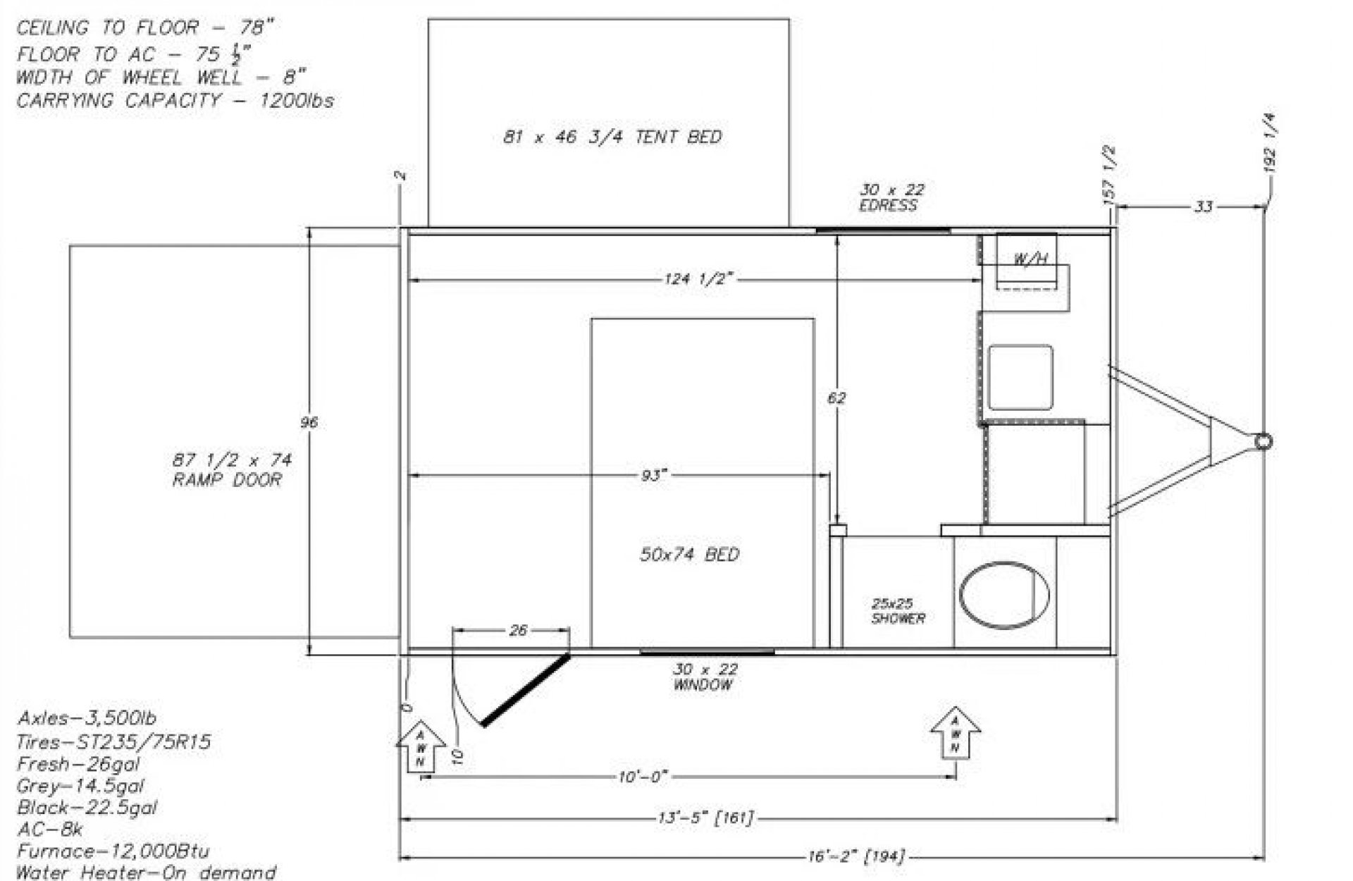 • Ramp Door: 88" x 74"